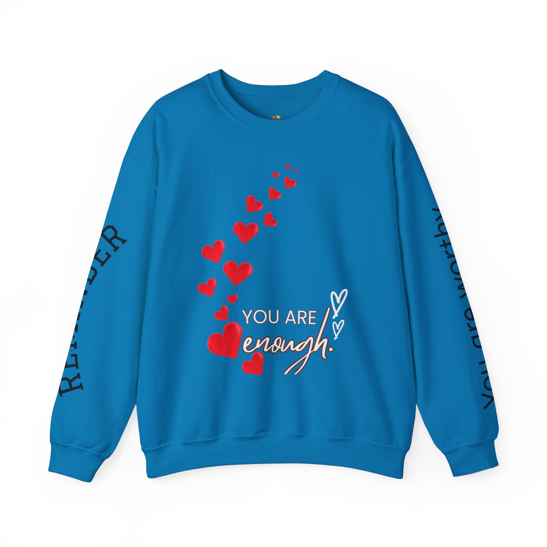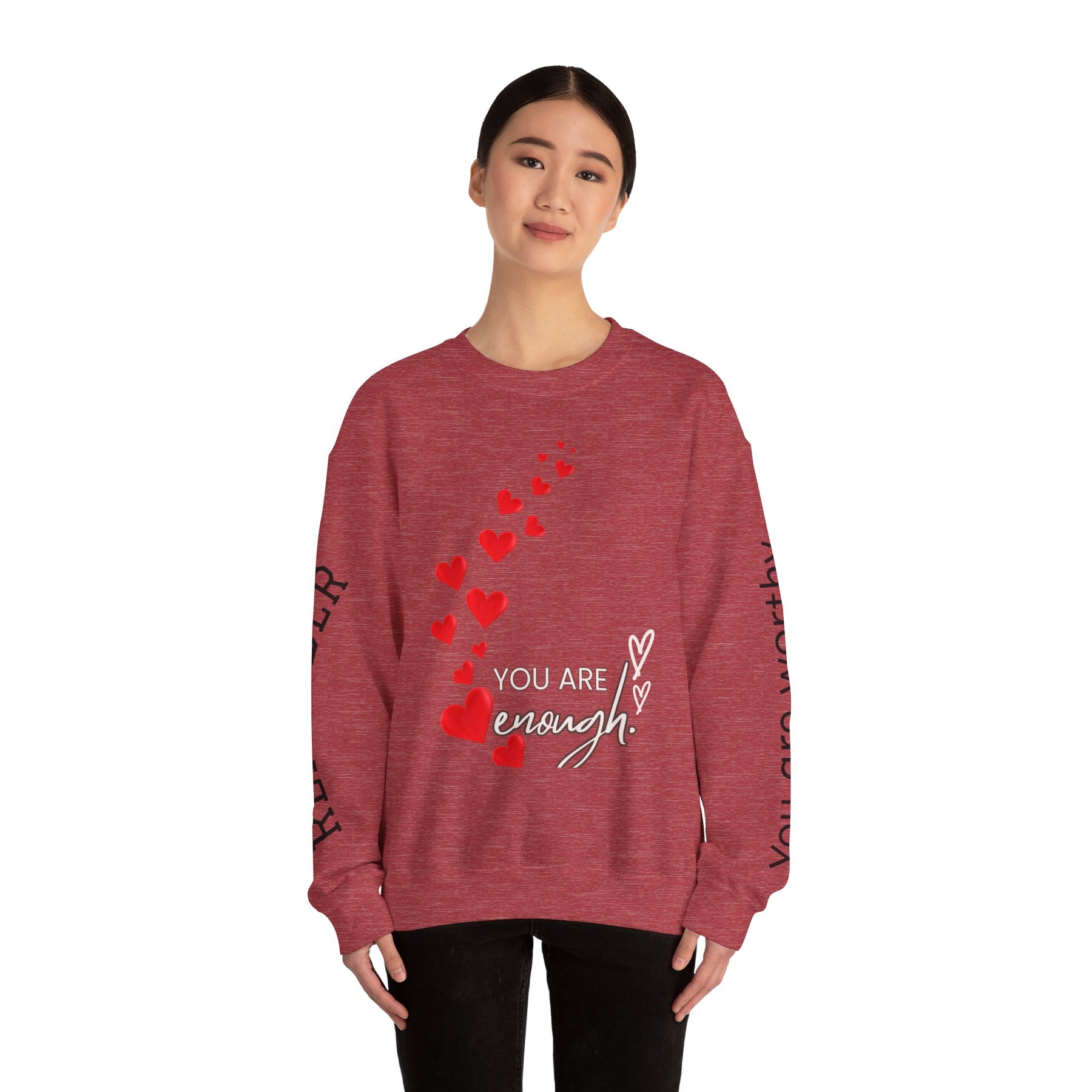 You are Enough Hearts Love Sweatshirt - Unisex Heavy Blend Crewneck, Gift for Him Her, Ultimate Comfort, Every Season, Unisex Sweatshirt