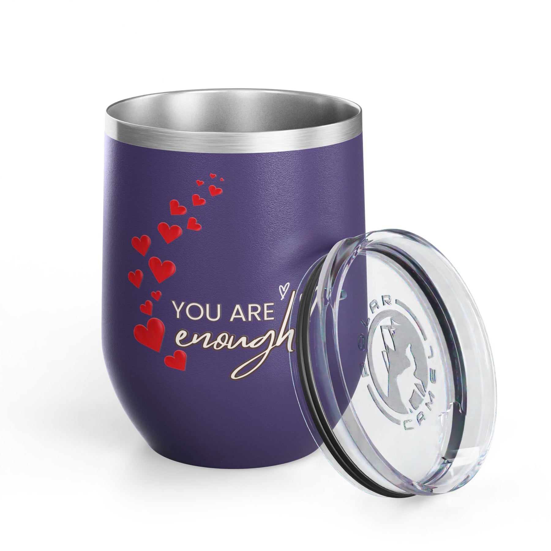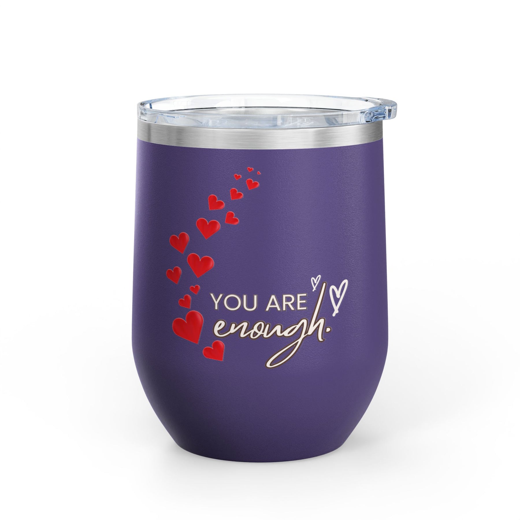 Positive Affirmation Wine Tumbler, 12oz - Perfect gift for coffee, cafe, and wine lovers. This stainless steel insulated cup features the uplifting message 'You're enough'. Suitable for birthdays and celebrations.